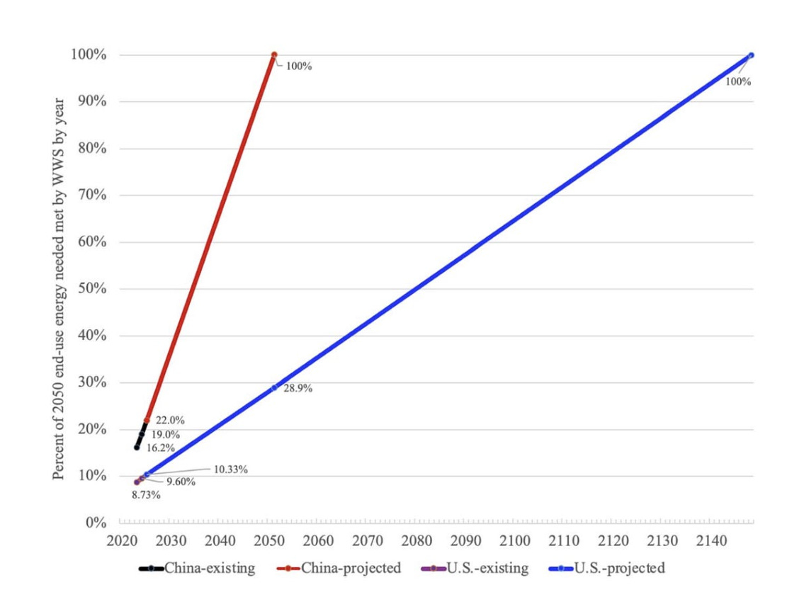 Getting Electric - Renewable gap ↑ At today’s build rates, China is on track to reach 100% renewables by 2051. The US by 2148 unless it solves permitting, grid build-out and siting. Battery build-out ↑ Also, China commissioned more than 65 GWh of grid-scale battery storage in December alone – over 15 GWh more than the US added in all of 2025.