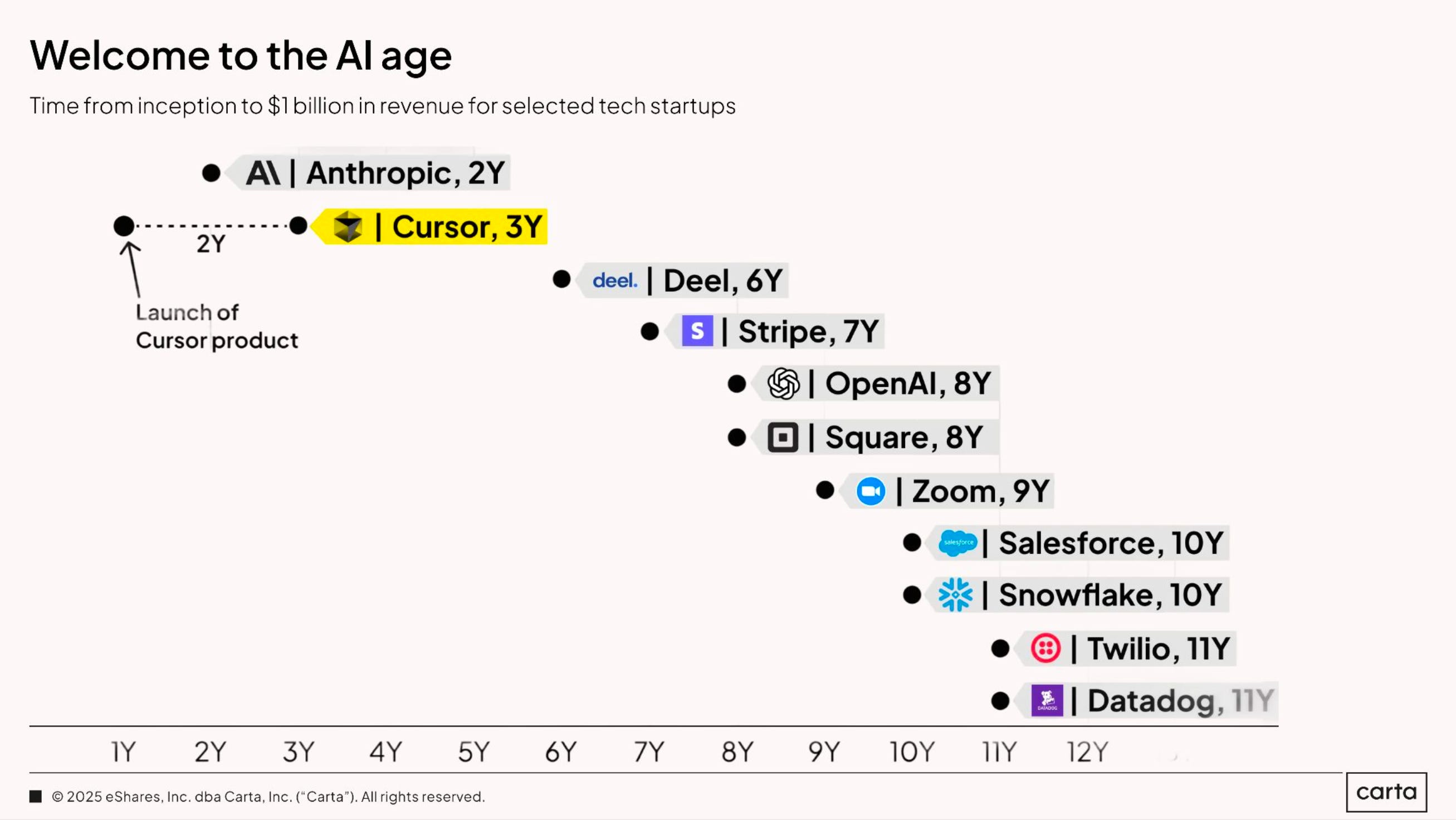 Welcome to the AI Age - Land of the Revenue Unicorns…Time from inception to $1bln in revenue for Tech startups collapses…